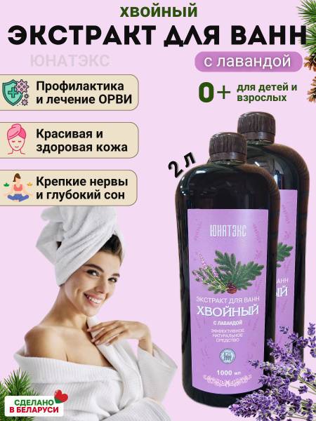 Unwind and rejuvenate with Unatex's 2L Lavender & Pine Needle Bath Extract, a luxurious and therapeutic bath experience crafted in Belarus.