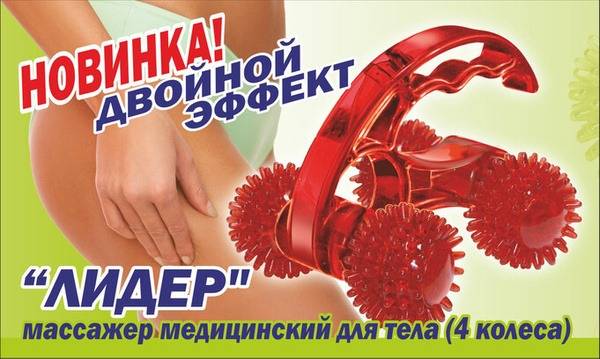Keywords: massage roller, 4-wheel massage roller, cellulite massage, back pain relief, muscle pain relief, circulation improvement, acupressure, sports massage, self-massage, myositis treatment, radiculitis treatment, osteochondrosis treatment, headache relief, insomnia relief, Leader massage roller.
