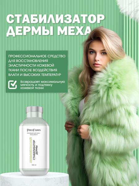 Derma stabilizer, fur dressing, leather dressing, leather softener, plasticizer, high-temperature damage, moisture damage, collagen damage, fur restoration, leather restoration, professional leather care, home leather care, eco-friendly, biodegradable, synthetic, nanotechnology, ProFurs, leather conditioner, fur conditioner, "cardboard effect" leather, stiff leather, leather repair, fur repair.