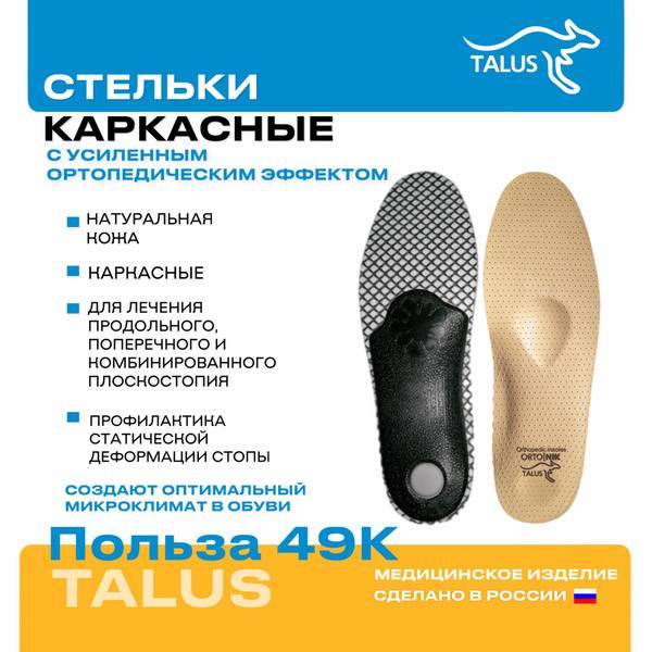 Orthotic insoles, arch support insoles, plantar fasciitis insoles, flat feet insoles, leather insoles, men's insoles, women's insoles, overpronation insoles, high arch support insoles, foot pain relief, comfortable insoles, Talus 49K, CARBOSAN, shock absorbing insoles, breathable insoles, orthopedic insoles, supportive insoles, foot care, high-quality insoles.