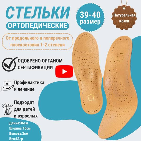 Title: Leather Orthotic Insoles with Arch Support - Men's & Women's (Sizes 39-40)
