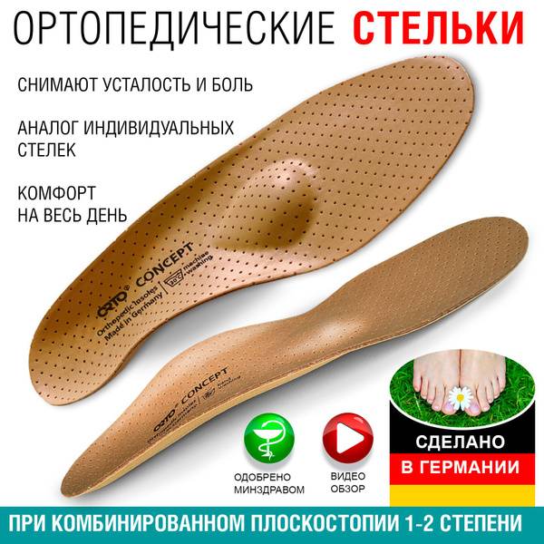 Keywords: orthotic insoles, leather insoles, arch support, rigid support, pronation control, flat feet, plantar fasciitis, foot pain relief, back pain relief, medical grade insoles, podiatrist recommended, orthopedic insoles, ankle support, knee support, hip support, osteoarthritis, coxarthrosis, gonarthrosis, dorsopathy, Albrecht St. Petersburg Institute of Prosthetics, ORTO Concept.