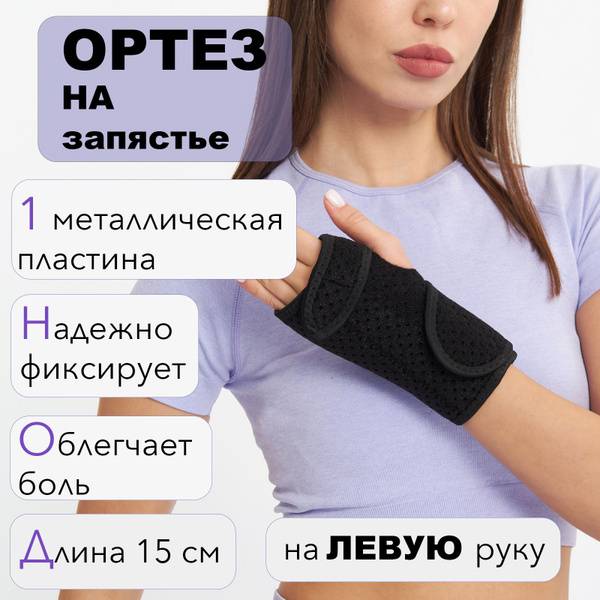 This left wrist brace provides superior support and stabilization for the wrist joint. Ideal for injuries and pain, its reinforced design with a single plate offers strong protection and prevents excessive movement. Made from high-quality, comfortable materials, this adjustable brace features straps for a customized fit. The slim, ergonomic design ensures comfortable all-day wear, even under clothing, without slipping or causing discomfort. Experience reliable support and pain relief with this effective wrist stabilizer.