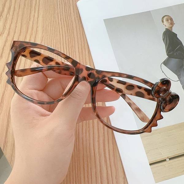 Option 1 (Style Focus): Make a statement with these chic leopard print eyeglass frames, accented by a charming bow detail. One pair of exquisitely crafted frames perfect for adding a touch of playful sophistication to your look. These women's eyeglass frames are both stylish and trendy.
