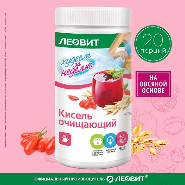 Description: Leovit's dietary oat cleansing jelly is a gentle and effective way to support weight loss. This quick-preparation, soluble powder is enriched with beneficial ingredients like green tea, coriander, apple, celery, bay leaf, beetroot, and corn silk extract to help detoxify your body. This delicious drink aids in the elimination of toxins, improves metabolism, promotes healthy digestion, reduces bile stagnation, and enhances bowel motility. Simply mix 2 tablespoons (20g) with a cup of hot water (150-180ml), let it sit for 1-2 minutes, and enjoy! For optimal results, consume twice daily on an empty stomach or replace one meal. Contains 340 kcal and 89g of carbohydrates per 100g. Supports weight management, detoxification, improved gut health, and reduced bile stagnation. A convenient and healthy addition to any weight-management or detox program. Suitable for those following a low-calorie diet.
