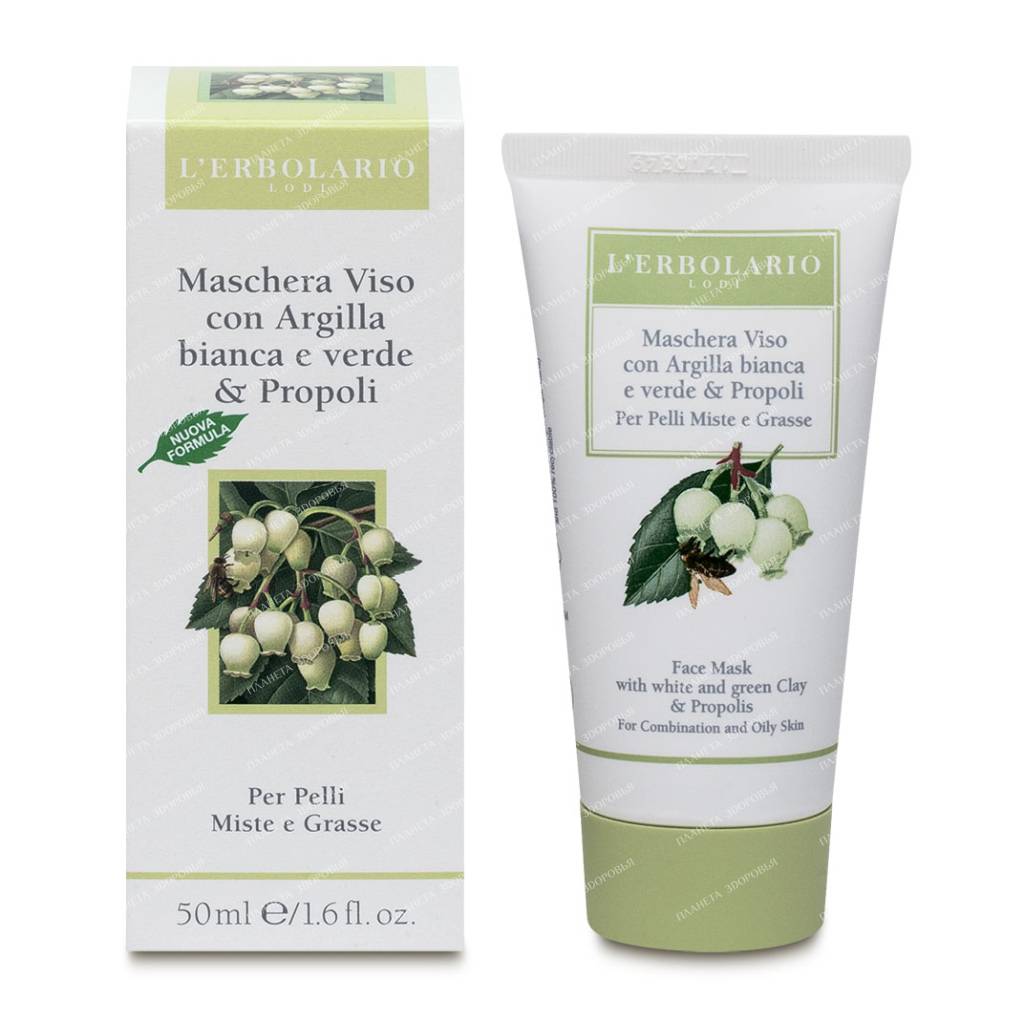 Keywords: L'Erbolario, face mask, white clay, green clay, propolis, purifying, pore-tightening, sebum control, oil control, acne, blemishes, sensitive skin, natural ingredients, skincare, beauty, facial care, clean skin, radiant skin, healthy skin, buy online, L'Erbolario face mask price, L'Erbolario face mask instructions.