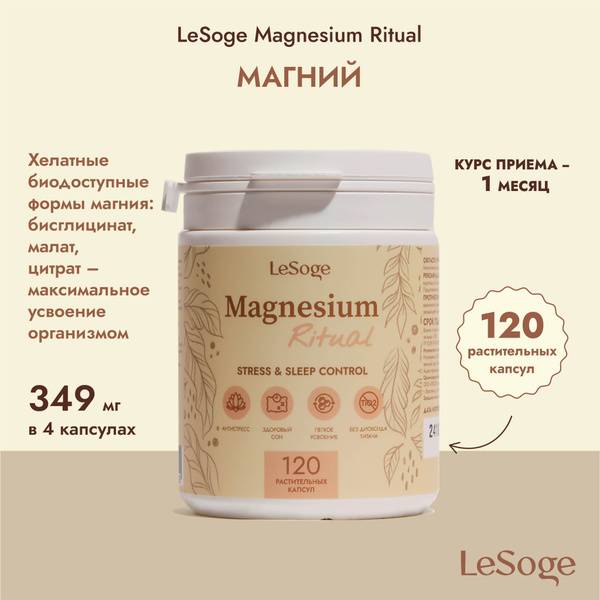 LeSoge Magnesium Ritual is perfect for athletes, pregnant women, and anyone seeking to optimize their magnesium intake. Each bottle contains 120 vegetarian capsules. All LeSoge supplements are officially registered.