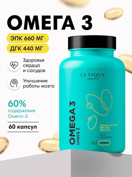 Letique Cosmetics Omega-3 Fish Oil Capsules (60 Count)