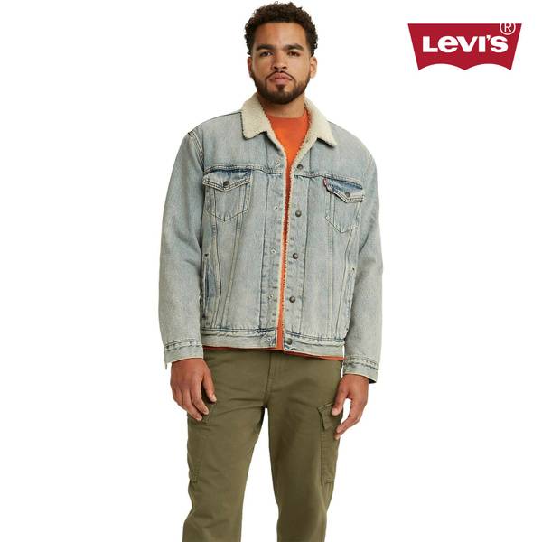 Stay warm and stylish in this men's Levi's Sherpa Trucker Jacket. Crafted from 14 oz denim, this jacket features a sherpa-lined collar and body for ultimate comfort and warmth. The classic design includes a pointed collar with white sherpa trim, button front closure, internal and external pockets for convenient storage, and an adjustable hem. Made from 100% cotton, this Levi's jacket is perfect for everyday wear. Guaranteed authentic – purchased directly from official Levi's representatives and includes all original tags, labels, and barcodes. Traceable through the "Chestny Znak" system (where applicable).