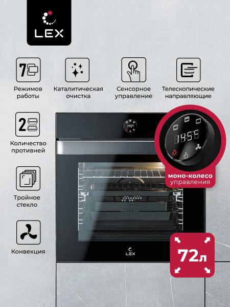 The LEX EDP 607 Wide Series built-in electric oven combines convenience and reliability in one sleek appliance. This spacious 72-liter oven features 7 cooking modes, perfect for large family meals and impressive culinary creations. The ergonomic wide handle and intuitive control ring with LED display enhance its modern design and user-friendliness.