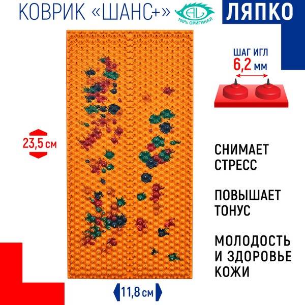 The Lyapko Chance Plus acupuncture mat offers a convenient and effective way to experience the therapeutic benefits of acupressure at home. This high-quality mat features a precisely spaced array of needles (6.2mm spacing) crafted from a unique blend of metals for optimal therapeutic effect. Its dimensions (11.8x23.5cm) make it perfectly sized for targeting specific areas of the body, including the back, neck, shoulders, legs, and feet.