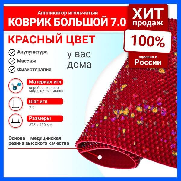 Title: Large Lyapko Applicator Acupuncture Mat (7.0 Ag, 48 x 27.5 cm) - Red