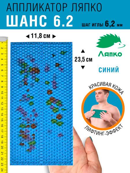 Experience the therapeutic benefits of the Lyapko Chance Plus acupuncture mat. This high-quality mat features 6.2mm needles that gently stimulate acupuncture points, promoting improved blood circulation, muscle relaxation, and pain relief. Ideal for back pain, neck pain, joint pain, and post-injury rehabilitation, the Lyapko mat offers targeted relief and promotes overall well-being. Its ergonomic design comfortably conforms to the body, providing effective treatment for various areas, including the back, neck, legs, abdomen, and more. Made with durable, eco-friendly materials and a comfortable medical-grade rubber base, the Lyapko Chance Plus mat offers lasting relief from stress and tension while enhancing your overall health and appearance. Suitable for both men and women.