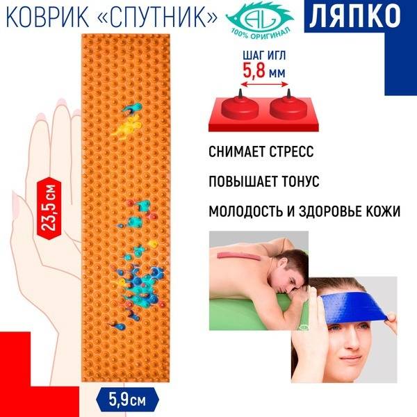 Lyapko applicator, acupuncture mat, pain relief mat, massage mat, Sputnik Plus, joint pain relief, muscle pain relief, headache relief, back pain relief, neck pain relief, recovery mat, galvanic stimulation, reflexology mat, 5.8mm needle spacing, silver needles, medical-grade rubber, portable massage mat, Lyapko, acupressure mat.