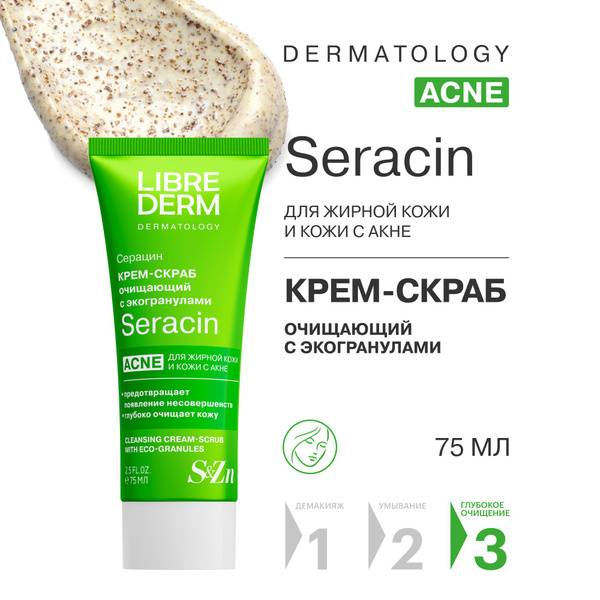 </section> <section>Apply a small amount of Seracin Eco-Scrub to damp face, décolletage, or back. Gently massage in circular motions, then rinse thoroughly with water. Use once or twice a week for best results. Experience the difference – smoother, clearer, and more radiant skin awaits. Trust LIBREDERM Seracin for professional-grade skincare that delivers visible results.