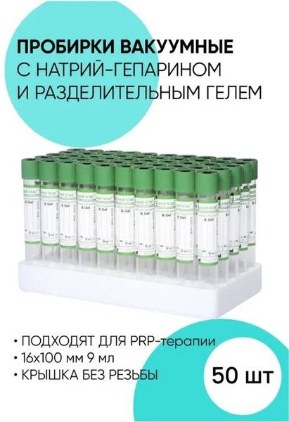 Vacuum blood collection tubes, PRP therapy, plasma lifting, sodium heparin, gel separator, Lind-Vac, laboratory consumables, medical supplies, cosmetic procedures, blood collection tubes 9ml, 16x100mm, laboratory equipment, centrifuge tubes, plasma separation, high-quality, reliable, accurate, efficient, 50 pack