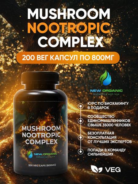 Invest in your health with New Organic's Lion's Mane, Cordyceps, Reishi & Trametes Mushroom Complex.
