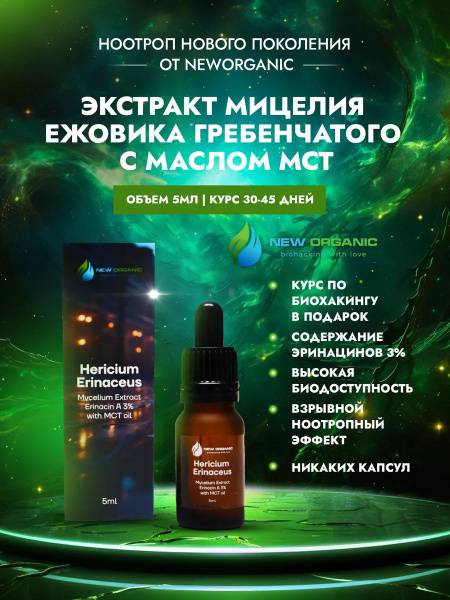 Experience the revolutionary power of NewOrganic's Lion's Mane (Hericium erinaceus) liquid carbon dioxide extract. Unlike Lion's Mane capsules, our sublingual extract boasts superior bioavailability for faster, more noticeable nootropic effects. Quickly absorbed through the oral mucosa, its potent nutrients—including 3.08% erinacines, Vitamins A, E, K, D, B1, B6, B5, B12, essential amino acids, and healthy fats—support optimal brain and body function within minutes.