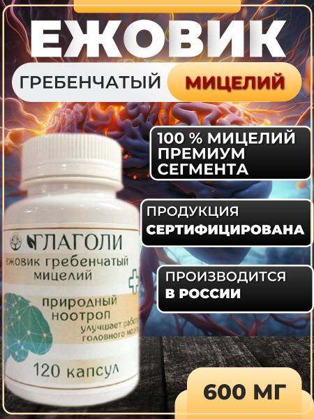 Glagol Lion's Mane mushroom capsules deliver the potent benefits of Lion's Mane mycelium—the vegetative body of the fungus—known for its powerful nootropic effects. This supplement supports brain health by enhancing neurotransmitter production, potentially mitigating neurodegenerative diseases. Lion's Mane also exhibits antioxidant properties, promotes cardiovascular health, aids in gut health, may help regulate blood glucose levels in individuals with diabetes, and supports a healthy immune system. Ingredients: Lion's Mane mycelium, gelatin capsules. Experience the cognitive and overall health benefits of this remarkable mushroom.