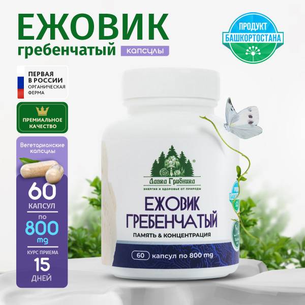 Lion's Mane, Lion's Mane Mushroom, Lion's Mane Capsules, Nootropic, Cognitive Function, Memory Improvement, Concentration, Nerve Regeneration, Nerve Growth Factor (NGF), Brain Health, Alzheimer's, Parkinson's, Stress Reduction, Immune Support, Natural Supplement, Vegetarian, GMO-Free, Bashkortostan, Neuroprotective, Brain Supplement, Cognitive Enhancement.