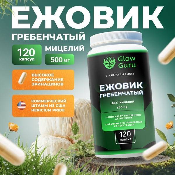 Glow Guru presents premium Lion's Mane mushroom (Hericium erinaceus) mycelium capsules – a powerful, natural way to support cognitive function and overall well-being. Our Hericium Pride strain, cultivated in the USA, undergoes a unique, low-temperature drying process (50°C) to preserve the full spectrum of beneficial compounds. Grown on high-quality unpolished brown rice, our Lion's Mane mycelium is exceptionally rich in erinacines and polysaccharides, ensuring superior absorption and effectiveness.