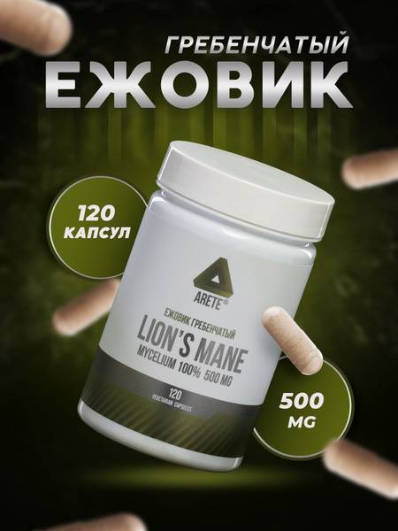 Keywords: Lion's Mane, Hericium erinaceus, mycelium, cognitive function, brain health, memory, focus, concentration, stress relief, anxiety reduction, immune support, beta-glucans, neuroprotection, nerve regeneration, stroke recovery, vegetarian, vegan, halal, supplement, ARETE.