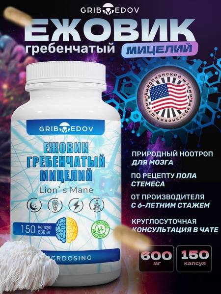 Experience the power of Lion's Mane mushroom (Hericium erinaceus) with our high-quality mycelium capsules. This potent nootropic supplement, cultivated from the renowned Paul Stamets American strain on a Russian farm, offers a wide range of potential cognitive benefits. Unlike some emerging fungi in the scientific community, Lion's Mane boasts extensive research and documentation on platforms like PubMed.