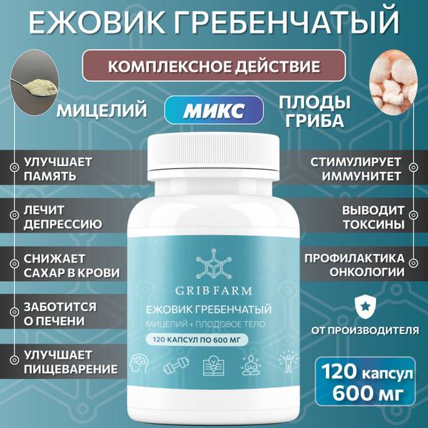 Unlock the full potential of Lion's Mane with GribFarm's synergistic blend of mycelium and fruiting body extracts. This powerful combination delivers a comprehensive approach to health and wellness, leveraging the unique benefits of each part of the mushroom.