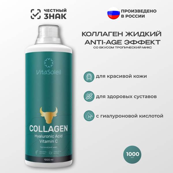 Maintain youthful vitality and support the health of your joints, skin, hair, and nails with Vita Soleil Liquid Collagen Tropical Mix. This delicious, easily-absorbed formula is designed for men and women seeking to enhance their appearance and well-being. Experience visible improvements: smoother, more elastic skin with reduced wrinkles; stronger, shinier hair; stronger, less brittle nails; and improved joint mobility and bone density. Our collagen supplement, enriched with Vitamin C for enhanced cardiovascular support, also contributes to reducing the risk of heart disease. Each 1000ml bottle provides 40 servings of collagen with hyaluronic acid, carefully formulated for optimal absorption and efficacy. Free from titanium dioxide, artificial colors, and artificial flavors, ensuring a pure and hypoallergenic experience.