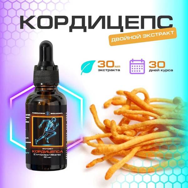 Certified organic vegan glycerin, double extract of Cordyceps militaris (Cordyceps militaris). Alcohol-free.