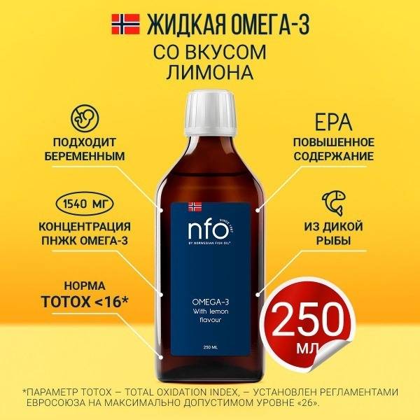 NFO Omega-3 Lemon Flavor is a premium, highly purified liquid fish oil with a delicious lemon taste. Sourced from wild-caught fish in the pristine waters of the Norwegian Sea, this exceptional supplement provides a potent dose of essential Omega-3 fatty acids, EPA (eicosapentaenoic acid) and DHA (docosahexaenoic acid).