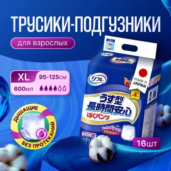 LiveDo "Refre" Adult Diapers (Pants) - XL, 16 Count, 600ml Absorption (4 Drops)