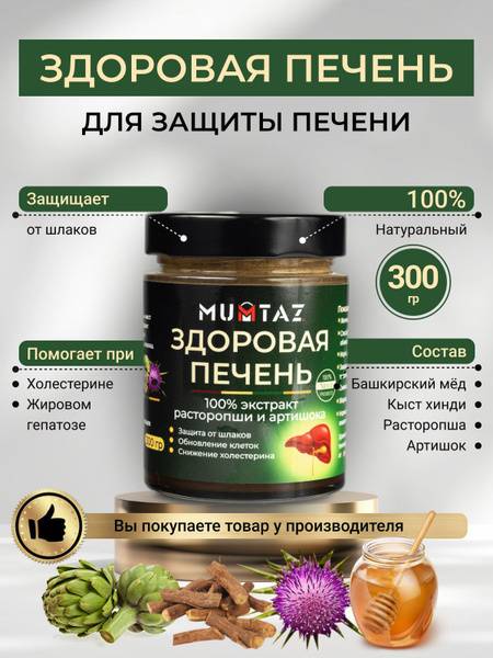 Support healthy liver function and gut health with our Liver Support Complex. This natural supplement promotes liver cell regeneration, protects against toxins and heavy metals, helps normalize cholesterol levels, and aids in the relief of fatty liver disease. Our formula, featuring honey, Cyst Al Hindi, milk thistle extract, and artichoke extract, gently cleanses the liver and improves gut function. Cyst Al Hindi helps normalize the liver's detoxification function and supports parasite cleansing. Milk thistle is renowned for its positive effects on liver health, supporting both prevention and treatment of liver conditions. Simply mix one teaspoon morning and evening, 20 minutes before meals. A course of treatment lasts 1-3 months (2-6 jars).