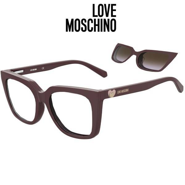 Love Moschino, MOL055, OT7, Plum, eyeglasses, sunglasses, clip-on, oversized, butterfly, women's eyewear, vintage, fashion, Italian eyewear, magnetic clip-on, UV protection, glare reduction, Safilo, high-quality plastic, comfortable, stylish, elegant, prescription glasses, astigmatism, flexible arms, metal plate series, Love Moschino logo, gradient lens, filter class 2P, Russian certified.