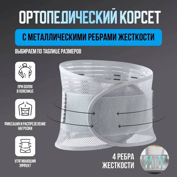 This orthopedic lumbar-sacral corset and back support provides compression and helps improve posture. Designed for rehabilitation after injuries and surgeries, it offers relief for individuals with prolonged sedentary work and conditions such as osteochondrosis, intervertebral hernias, and lumbar scoliosis. Ideal for managing lower back pain and promoting healing.
