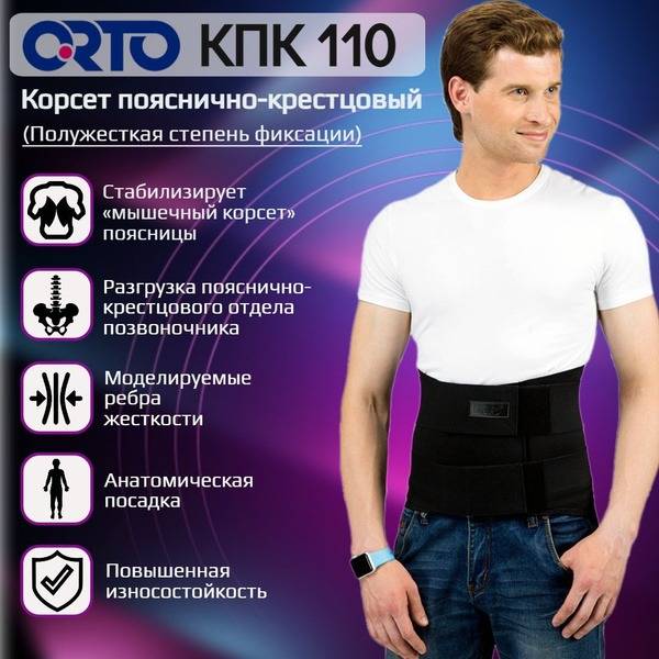 Keywords: orthopedic brace, lumbar support, sacral support, back brace, semi-rigid brace, back pain relief, herniated disc, spondylolisthesis, spondylitis, osteoporosis, osteochondropathy, spinal instability, post-surgical recovery, injury rehabilitation, adjustable brace, comfortable brace, ORTO KPK-110, XXL, black, medical brace, spinal support.
