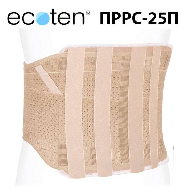 orthopedic corset, lumbar support, sacral support, back brace, back pain relief, lower back pain, medium fixation, Ecoten PRRS-25P, 25cm corset, lumbar-sacral corset, wool lining, heat therapy, lumbago, myositis, osteochondrosis, osteoarthritis, radiculitis, lumbar spondylosis, Schmorl's nodes, spinal support, posture support, injury recovery, post-surgery recovery, physiotherapy, manual therapy, spinal health, back pain treatment, pain relief, beige corset, comfortable corset, breathable corset, moisture-wicking corset.