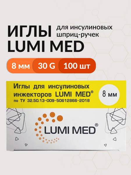 Description: Experience comfortable and precise insulin delivery with Lumi Med 30G insulin pen needles. These 8mm needles, featuring a 30G (0.3mm) gauge, offer superior performance thanks to enhanced geometry, professional laser sharpening, and a reinforced silicone coating. Each needle is individually sterile-packed for hygiene and safety. Compatible with most insulin pen injectors, Lumi Med needles ensure accurate insulin dosing, supporting various injection techniques. This 100-count pack provides a convenient, cost-effective supply. Made with high-quality surgical steel and adhering to international quality standards, Lumi Med needles offer reliable performance and peace of mind. Store at +5°C to +25°C, away from direct sunlight. For single use only.