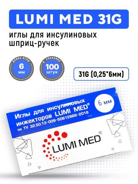 Experience comfortable and reliable insulin injections with Lumi Med 31G insulin pen needles. Each box contains 100 needles, providing a convenient and cost-effective supply for long-term use. Designed with a 6mm length and 31G gauge, these needles offer a virtually painless injection experience. Compatible with most insulin pen injectors, Lumi Med needles ensure precise insulin delivery for optimal blood sugar control. Their superior design minimizes discomfort, making regular glucose monitoring easier and more comfortable. Choose Lumi Med for a high-quality, reliable solution that prioritizes both your comfort and the effectiveness of your insulin therapy. Every needle undergoes rigorous safety and efficacy testing, guaranteeing a safe and worry-free injection every time. Improve your diabetes management today – order your supply of Lumi Med insulin pen needles now.