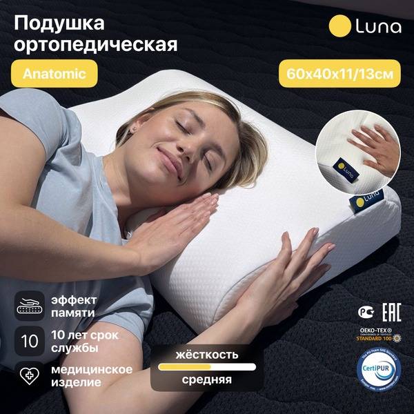 Keywords: memory foam pillow, orthopedic pillow, ergonomic pillow, neck pillow, side sleeper pillow, back sleeper pillow, 40x60 cm pillow, travel pillow, kids pillow, adult pillow, medically certified pillow, healthy sleep, pressure relief pillow, breathable pillow, Luna Inc pillow, Anatomic pillow, sleep support, gift pillow, premium pillow.