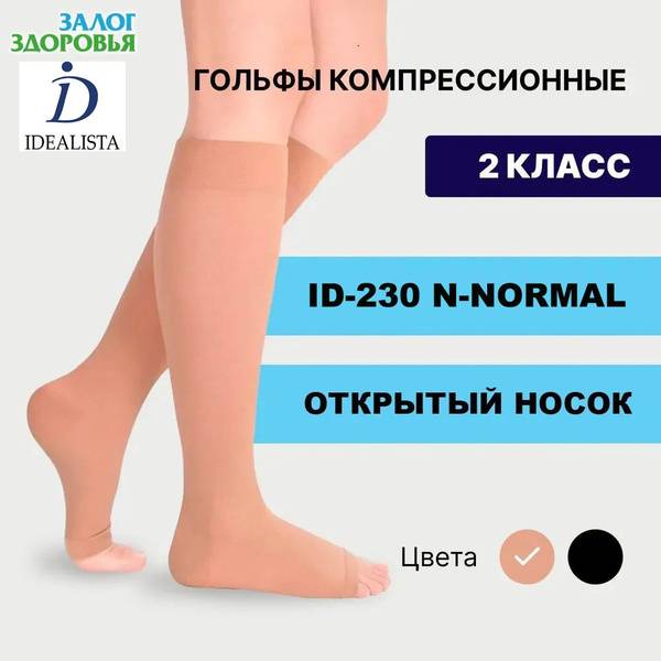 Luomma Idealista beige compression socks (unisex) offer superior comfort and support with an open toe design and silicone grip. These Class 2 compression socks feature: soft toe seams, extra durable elastic in the foot area for increased wear resistance, high breathability and moisture-wicking thanks to enhanced fiber capillarity, flat seams to prevent visible lines under clothing, graduated compression (decreasing from ankle to calf), and a universal foot size (fits 36-43 EU). Ideal for preventing venous disease, relieving tired legs, and supporting compression therapy after phlebosclerotherapy, venous surgery, and thrombosis. Also beneficial for those with a tendency towards obesity, chronic venous insufficiency, reticular varicose veins, lymphedema, and lipoedema. Consult a healthcare professional before use.