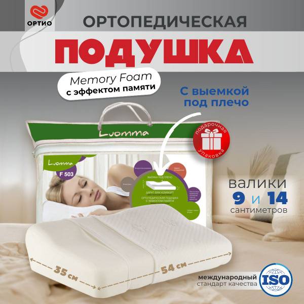 Luomma LumF-503 Orthopedic Memory Foam Pillow with Shoulder Cutout – 52x35cm, 9/14cm Height