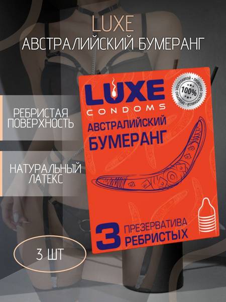Experience ultimate pleasure with Luxe Australian Boomerang textured condoms. These premium condoms offer a ribbed surface for enhanced sensation. Each condom measures 180±5mm long, 52±2mm wide, and is 0.06mm thick. Made from natural latex and are ISO 13485:2003 compliant. They provide a barrier method of contraception and STI protection. Expiry: 5 years.
