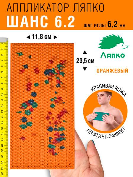Description: Experience the therapeutic benefits of the Lyapko Chance Plus acupuncture mat. This high-quality mat features 6.2mm spaced needles that gently stimulate acupuncture points, promoting improved circulation, muscle relaxation, and pain relief. Ideal for back pain, neck pain, joint pain, and rehabilitation after injuries, the Lyapko mat offers targeted relief and overall well-being. Its ergonomic design conforms to the body's natural curves for comfortable use on various body parts, including the back, neck, legs, abdomen, and feet. Made with durable, eco-friendly materials and a comfortable medical-grade rubber base, the Lyapko Chance Plus provides long-lasting relief from muscle tension and stress. Suitable for both men and women. Enjoy the revitalizing and restorative power of acupuncture therapy in the comfort of your own home.