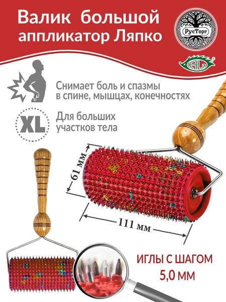 Keywords: Lyapko applicator, Lyapko roller, acupuncture roller, needle applicator, pain relief, back pain relief, muscle pain relief, reflexology, therapeutic device, massage roller, self-treatment, home therapy, sedative, stimulating, non-invasive, pain management, 111x61mm, M5.0, red applicator, Lyapko roller applicator large.