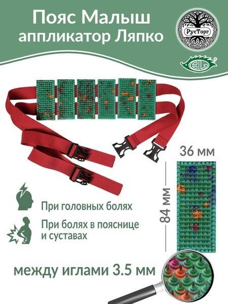 The Lyapko "Baby" Spiky Belt Applicator provides convenient, on-the-go pain relief. This innovative device consists of six 36x84mm plates with 960 needles (3.5mm pitch), secured by two adjustable straps for comfortable and effective treatment. Unlike traditional Lyapko applicators requiring you to lie down, the belt allows for continuous movement while targeting specific areas. Its secure fastening system ensures even pressure, enabling treatment of pain zones, reflected pain areas, radiation zones, projected areas of affected organs, and biologically active points and meridians. Easily adjustable and self-applicable, the Lyapko Baby Belt offers a versatile and practical solution for pain management. Ideal for busy individuals seeking effective, mobile pain relief.