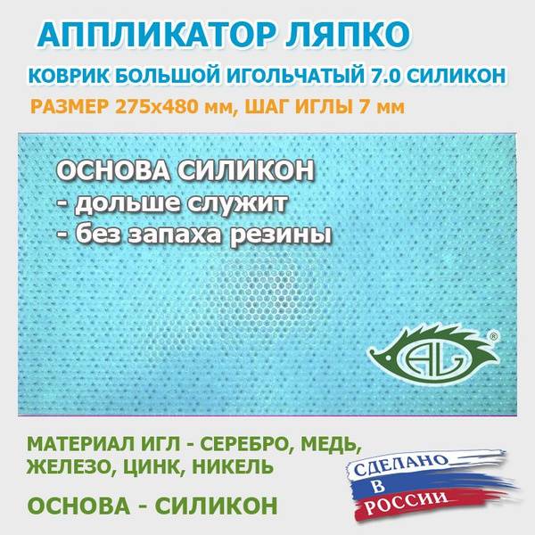 The Lyapko Large Applicator Mat (7.0 Silicone) provides extensive therapeutic coverage with its generous 275 x 480 mm size. Featuring a 7.0 mm needle spacing and a total of 2710 needles, this mat offers superior effectiveness compared to smaller models. Its unique design allows for versatile application:
