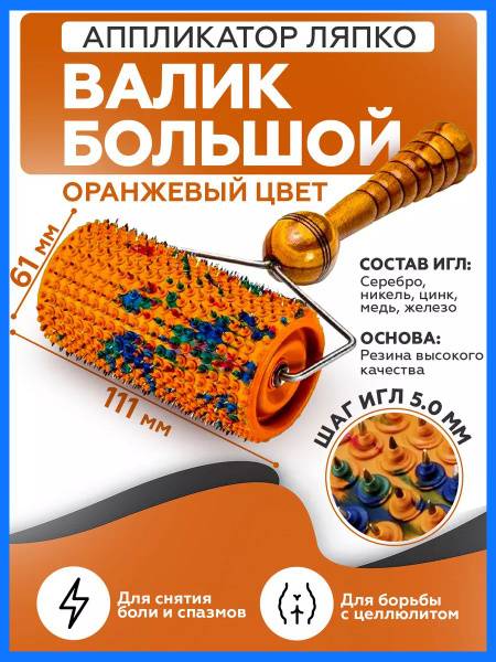 Experience the therapeutic benefits of the Lyapko Large Roller Massager (Model M 5.0). This versatile acupuncture roller is perfect for targeting large body areas like the back, abdomen, and thighs. Its hypoallergenic rubber base and needles crafted from medically beneficial metals (copper, silver, zinc, and iron) provide a gentle yet effective massage. The Lyapko roller helps alleviate pain, boost metabolism, improve sleep quality, and combat insomnia. It's also a valuable supplementary tool for managing cardiovascular conditions, gastrointestinal issues, and aiding recovery from injuries and strokes. Enhance your overall well-being and increase energy levels with regular use. Suitable for all ages. Contraindications: High fever, significant skin damage (wounds, extensive allergic reactions, burns), and thrombophlebitis.