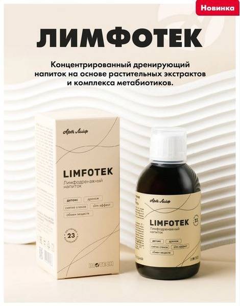 Lymphotec is a concentrated, multi-component drainage drink that activates the lymphatic system, helping to reduce swelling, eliminate toxins, and support healthy weight management. Made with high-quality plant extracts and metabiotics.