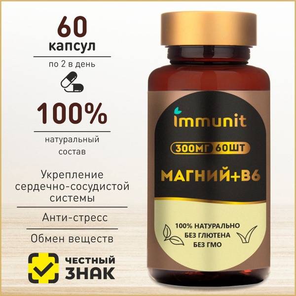 Experience the synergistic power of Magnesium & Vitamin B6 Immunit to alleviate stress, combat fatigue, and bolster your immune system. Each capsule delivers 300mg of carefully selected nutrients, including magnesium, vitamin B6, vitamin B1, vitamin B12, and folic acid—a comprehensive formula designed for optimal health and well-being. This magnesium B6 supplement for stress relief provides numerous benefits.